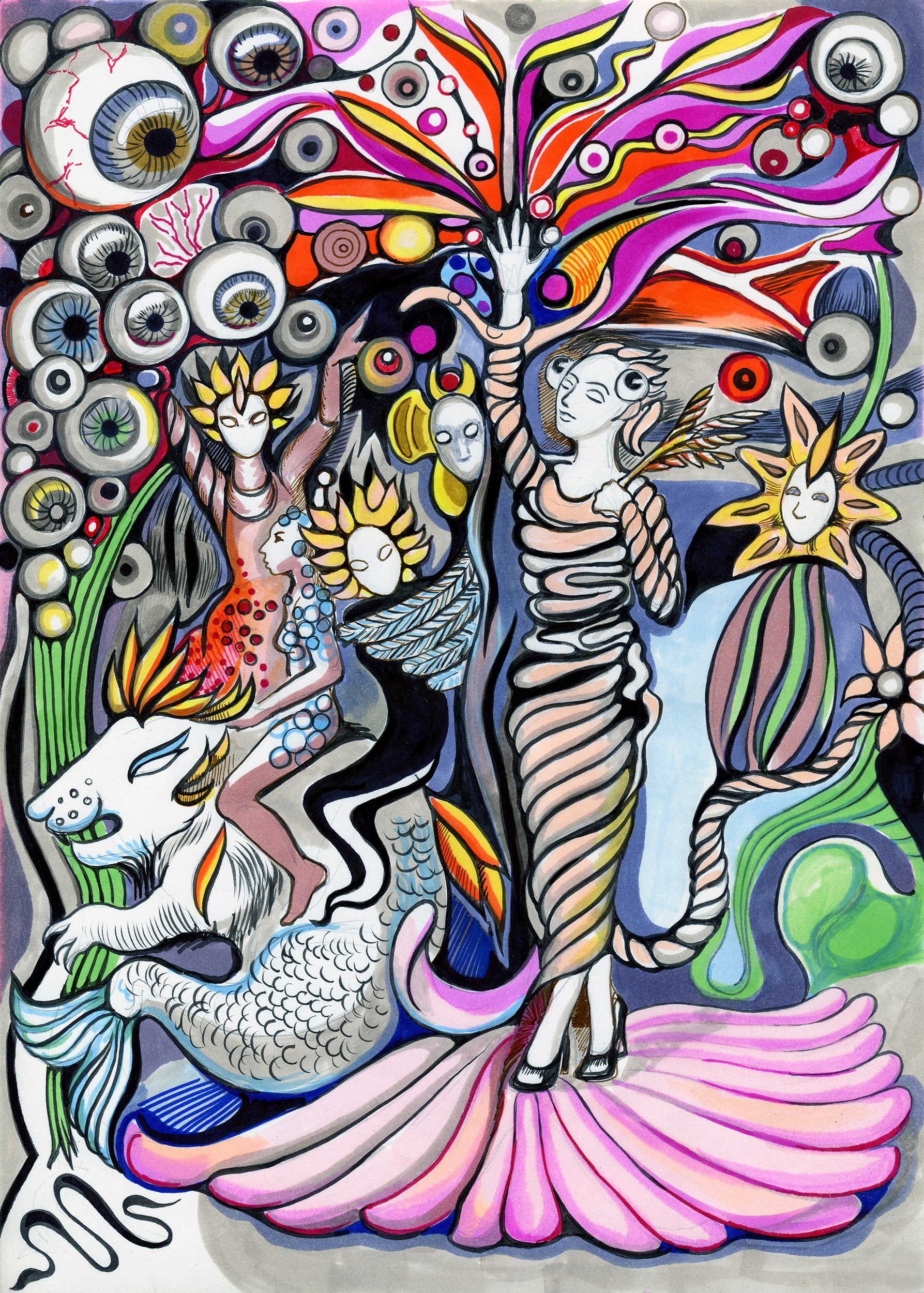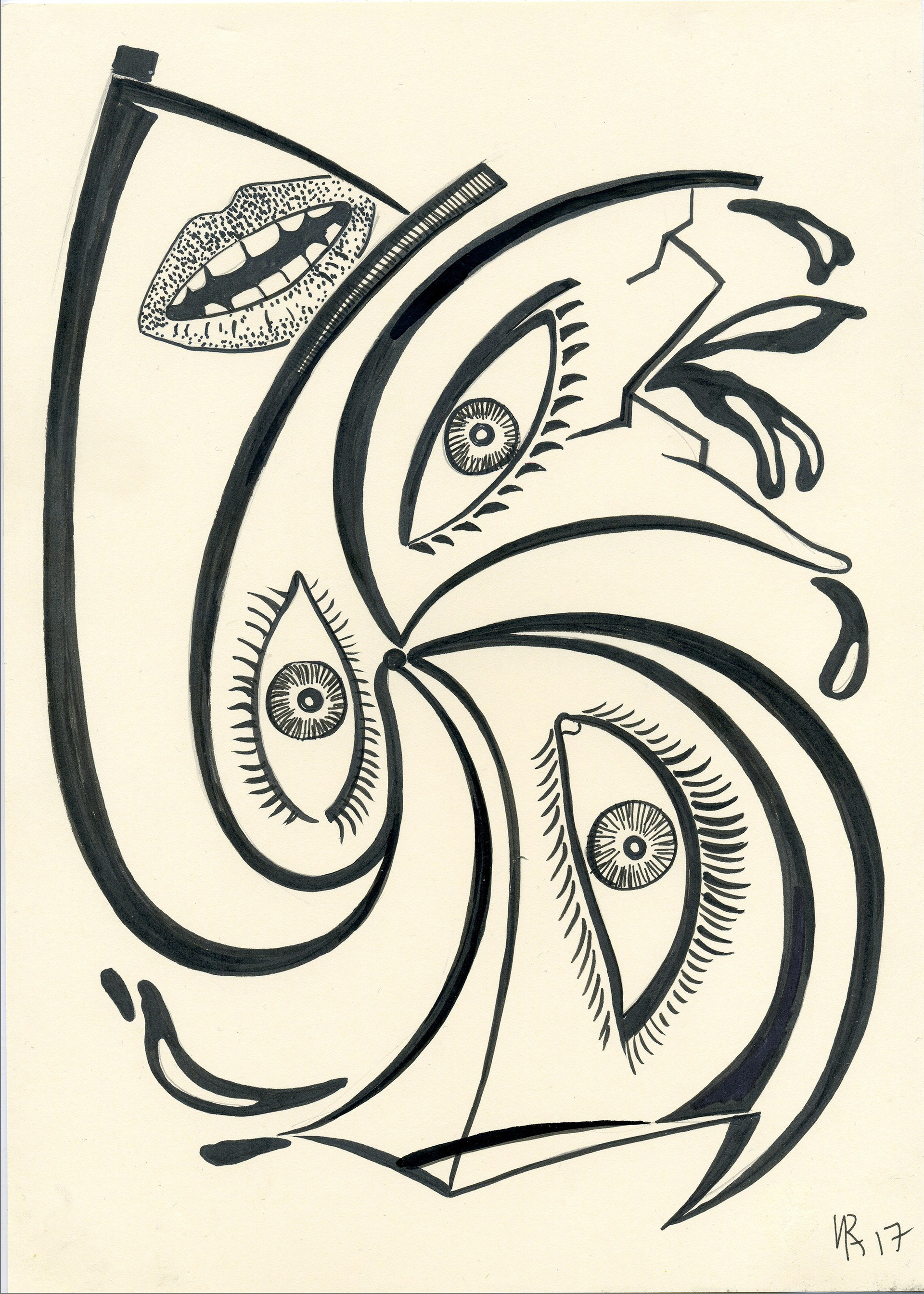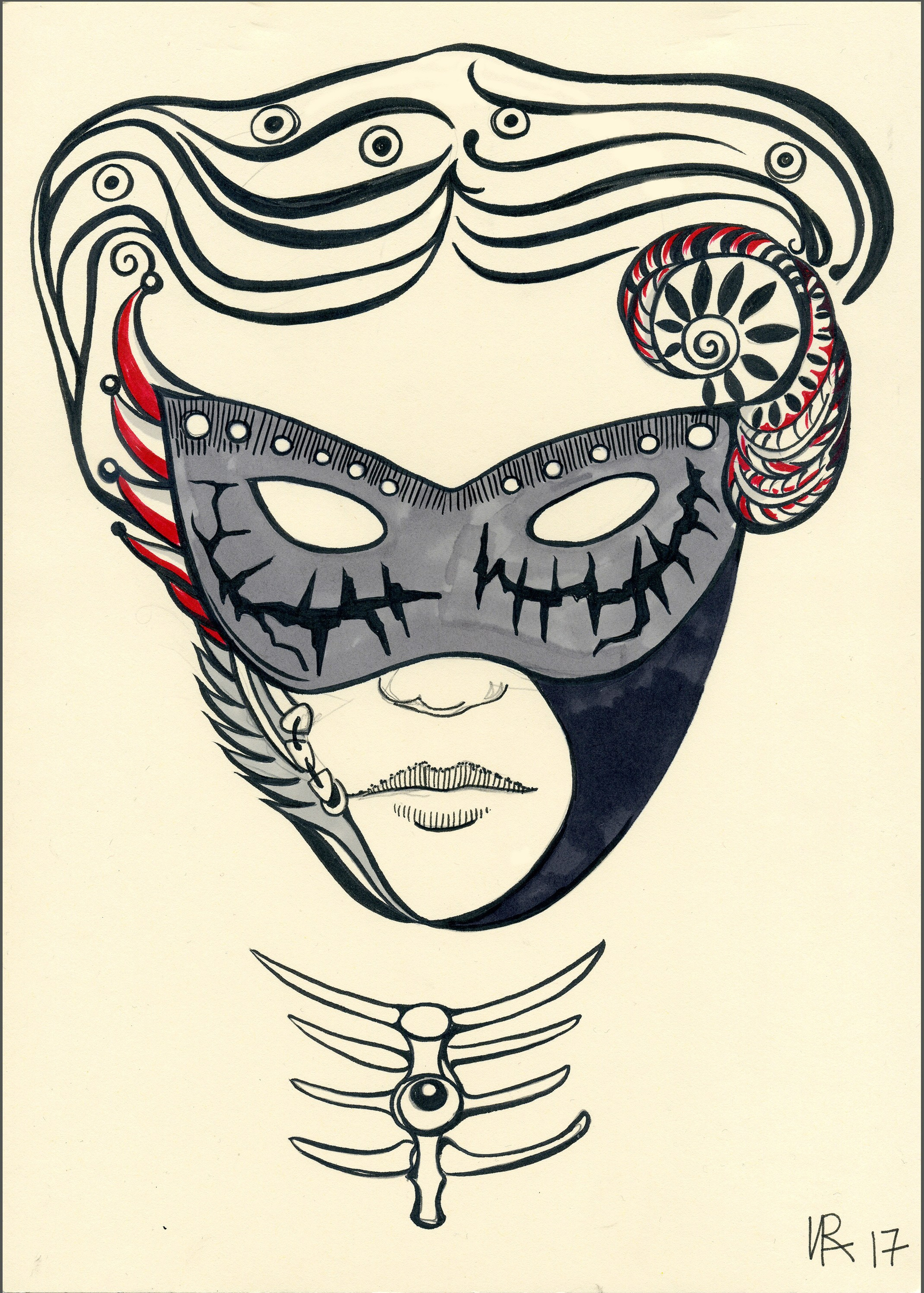 Маска. Бумага, линеры, маркеры. Формат А4.