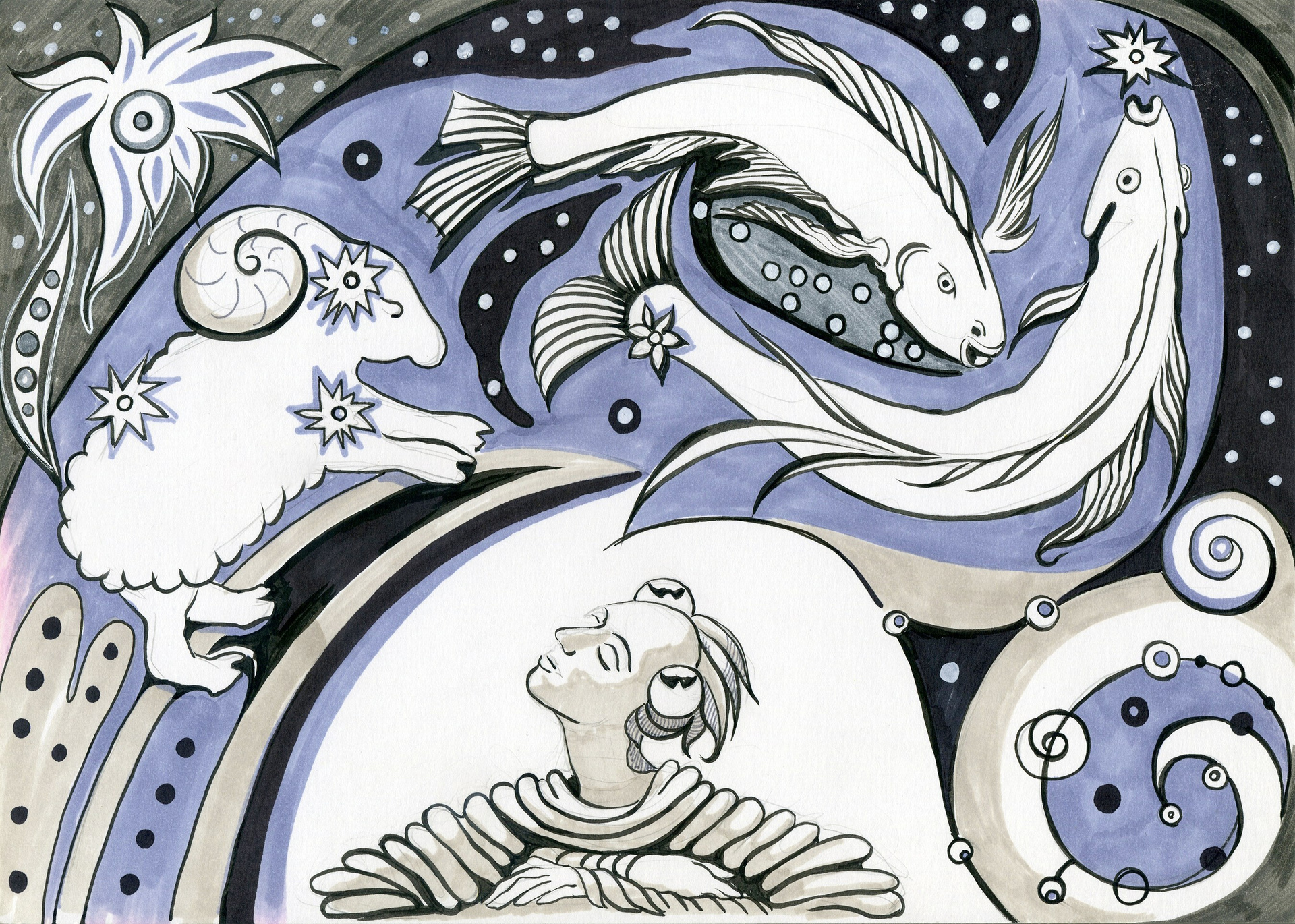 Ворон и ладонь. Бумага, линеры, маркеры. Формат А5. 2016
