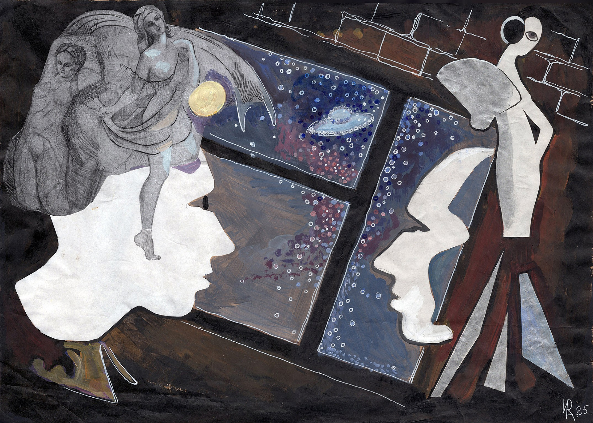 Отражение. Бумага, коллаж, акрил. 29х42 см. 2025 год