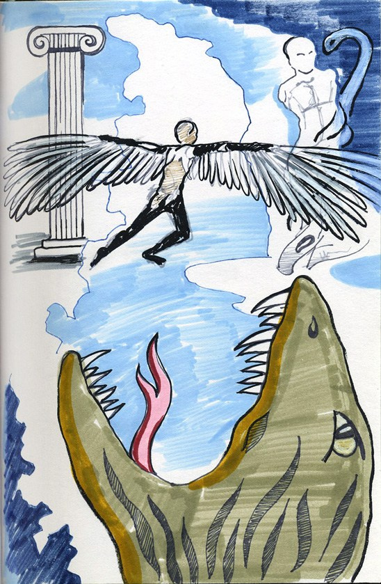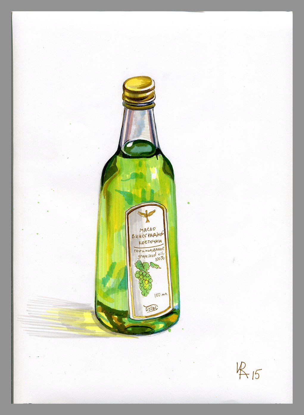 Бутылка с маслом. Бумага, маркеры. 38х23 см. 2017 год