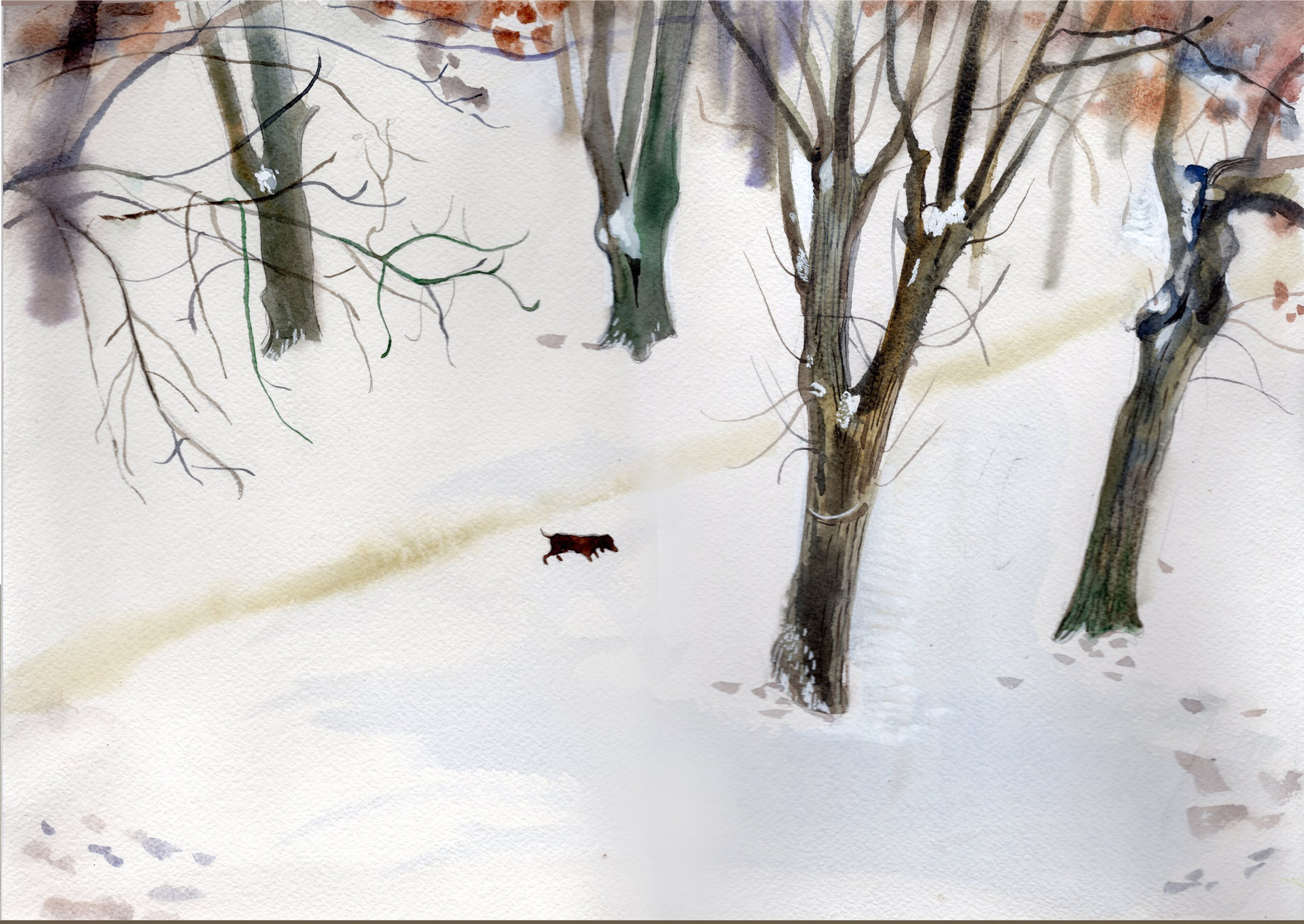 Зимняя прогулка. 30х42 см. Бумага, акварель. 2021 год.