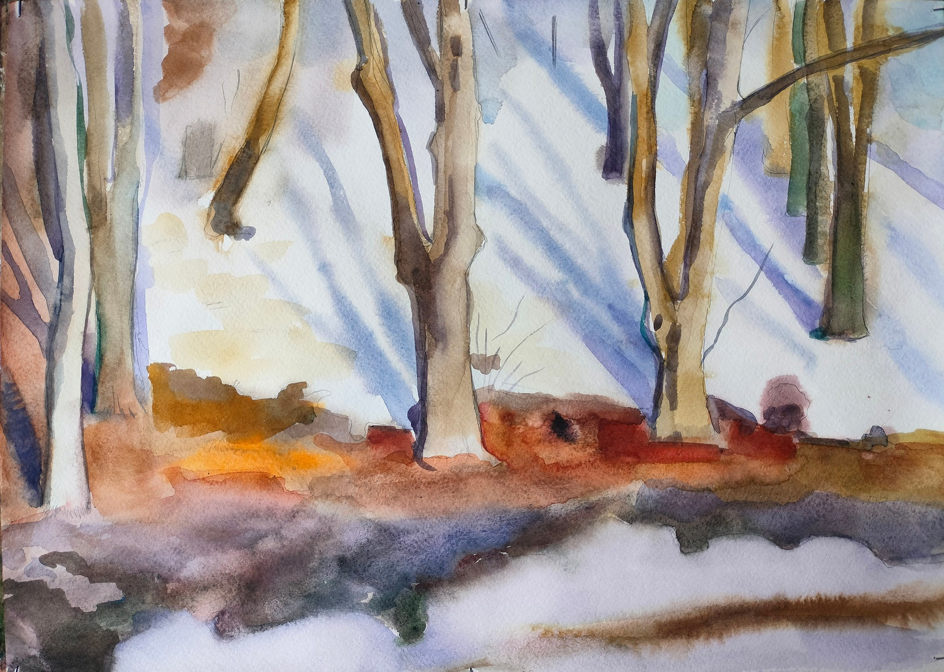 Тающий_снег. 30х42. Бумага, акварель. 2024 год.