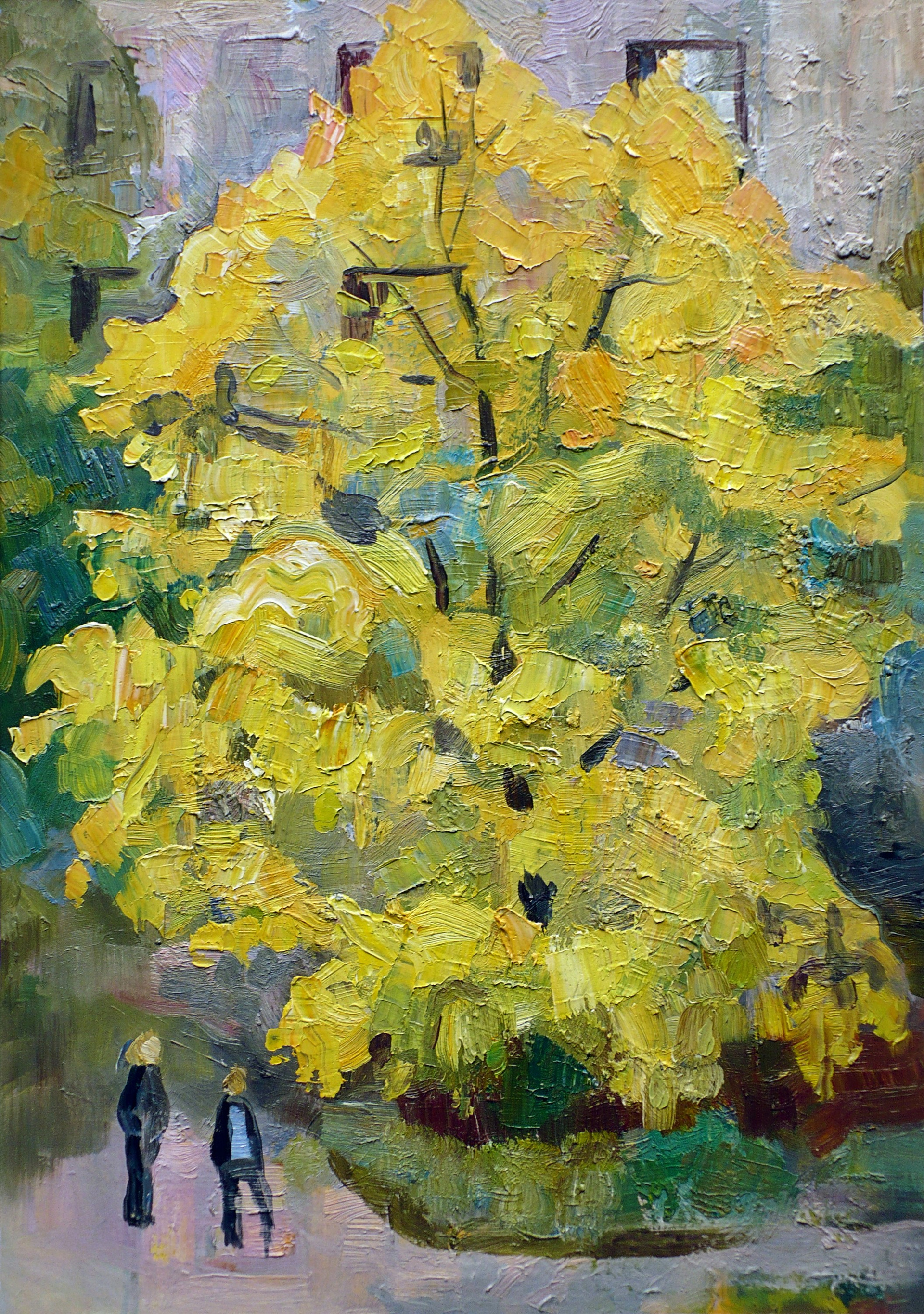 Большое желтое дерево. Осенний пейзаж. Картон, масло. 2007 год.