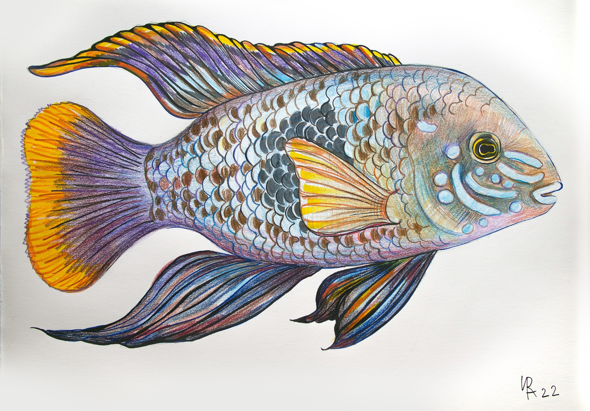 Акара. Бумага, цветные карандаши. Формат А3. 2022 год.