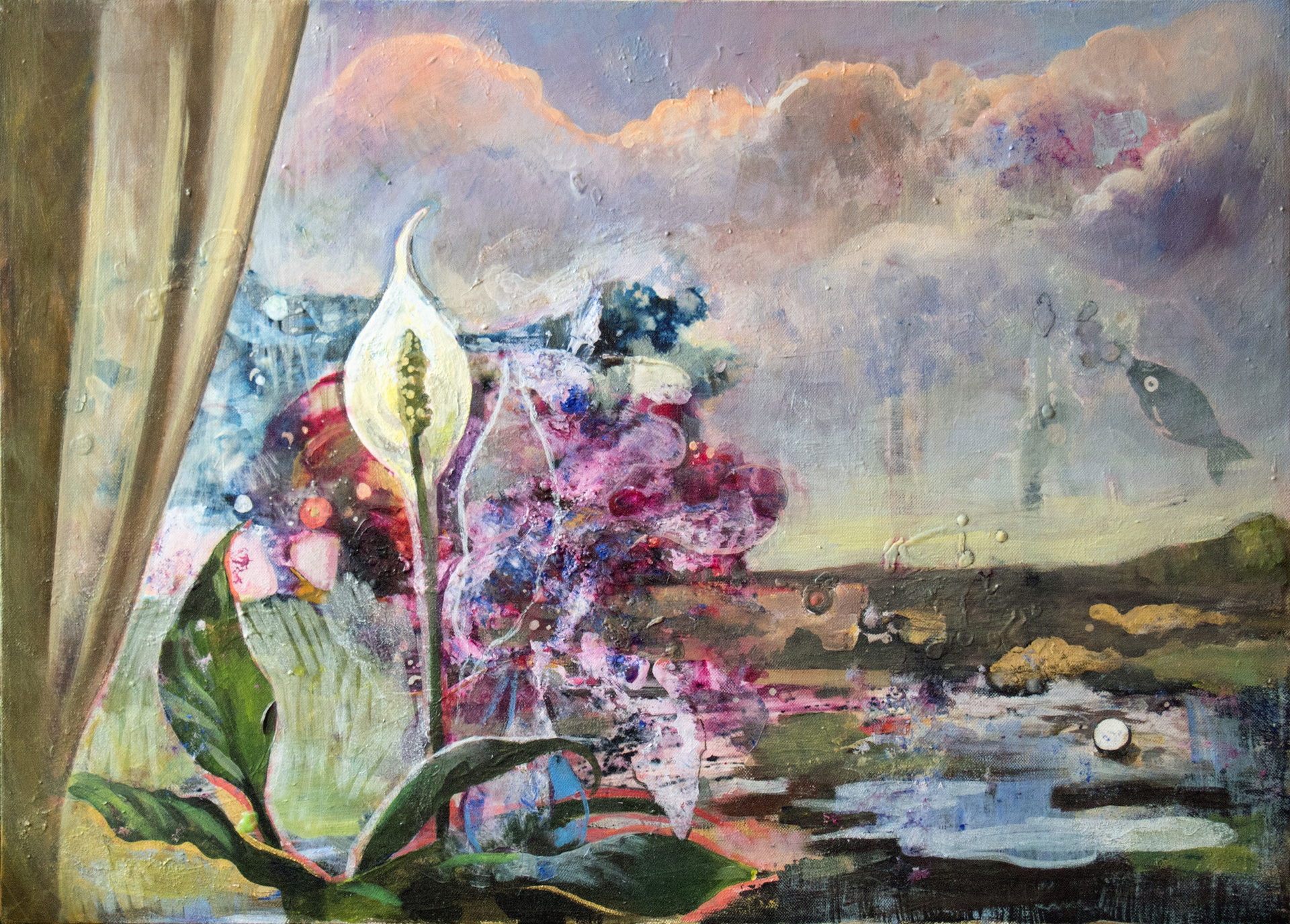 Спатифиллум и облака. Холст, акрил. 50х70 см. Год 2019
