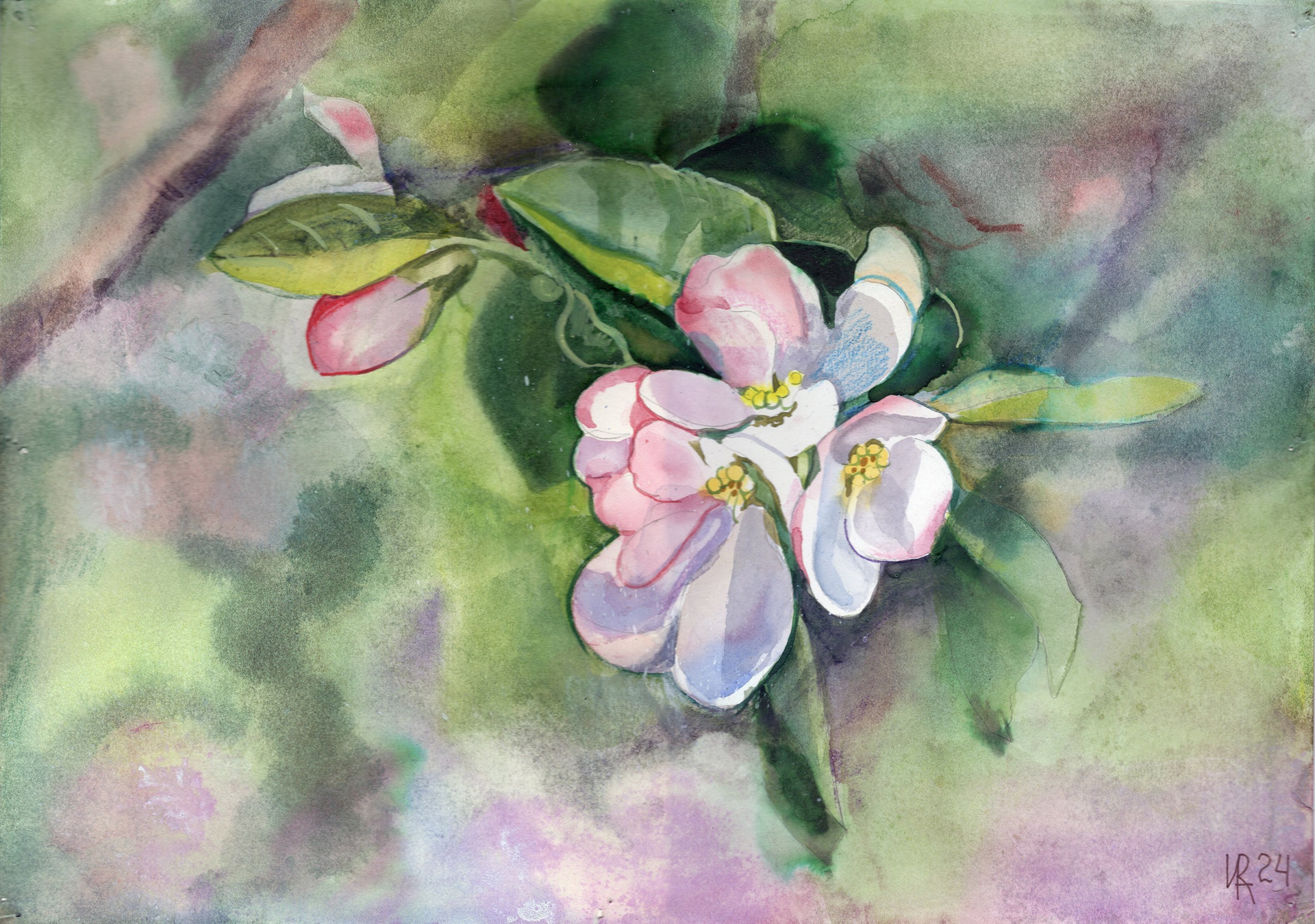 Яблоневый цвет. Размер 30х42. Бумага, акварель. 2024 год.